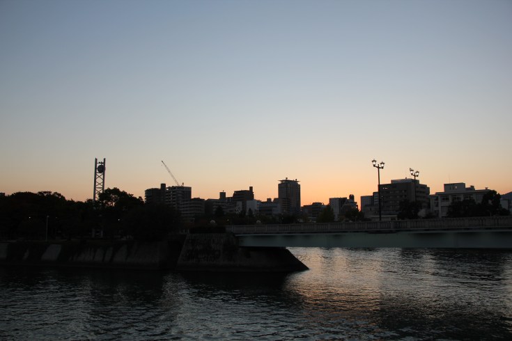 Dernière étape de notre petit voyage dans le Chugokû : Hiroshima ! Nous avions hâte de visiter celle ville tristement connue pour les événements tragiques d’août 1945, afin de nous rendre compte de l’impact qu’ils avaient eu, mais aussi pour voir comment la ville s’était reconstruite et vivait aujourd’hui. Hiroshima fut très agréable à découvrir, notamment grâce à sa proximité avec la mer, elle a en effet été construite sur le delta du fleuve Ôta gawa, et ses nombreux parcs, le plus important étant le parc de la Paix, construit sur les lieux de l’impact de la bombe nucléaire, qui lui donne un aspect finalement très paisible.