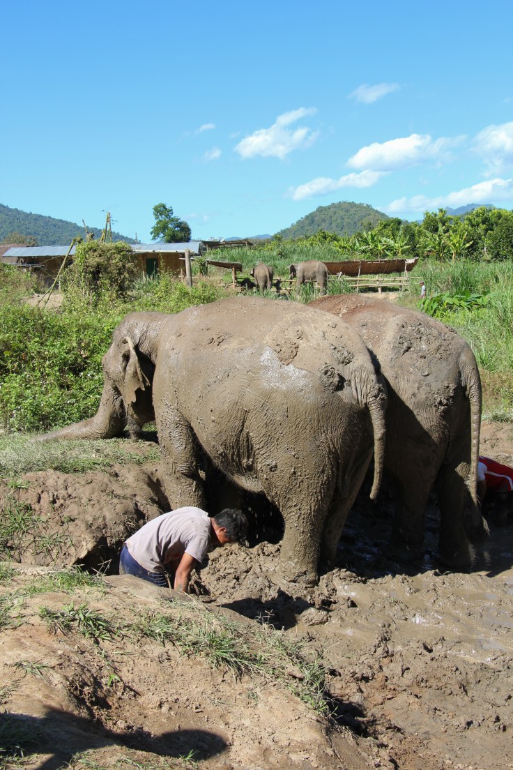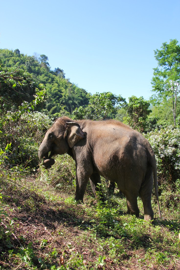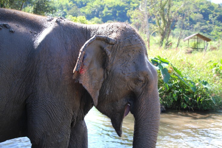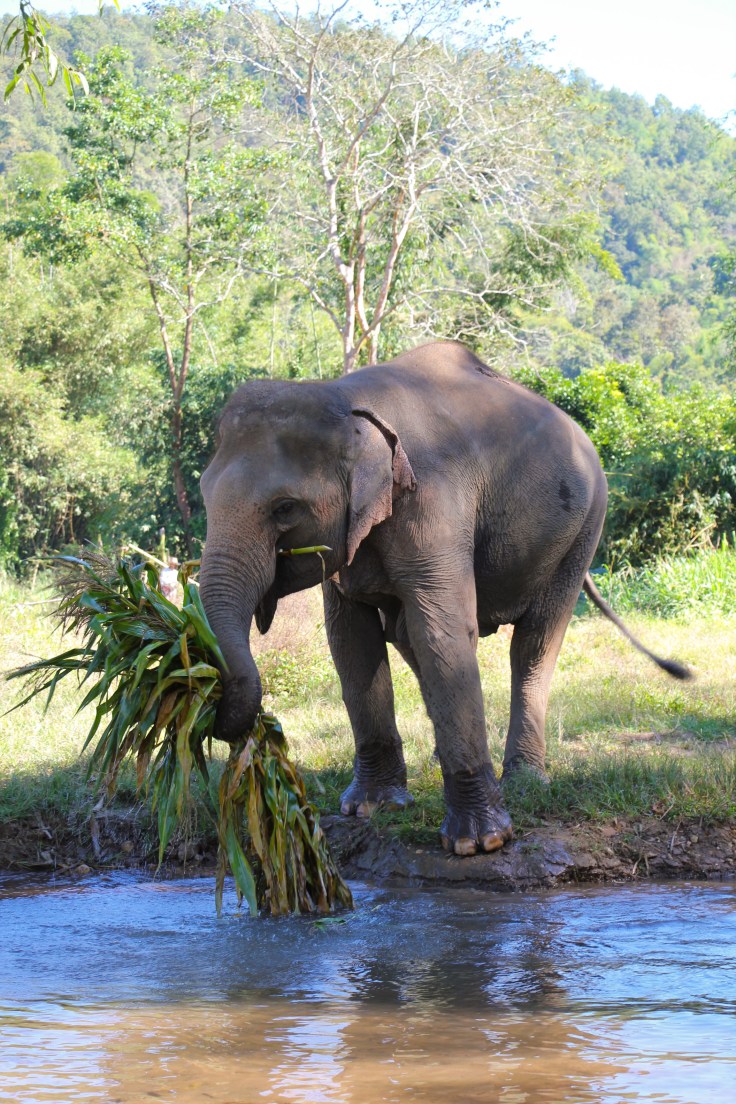 Le parc où nous sommes allés, Elephant Nature Park, se situe à environ 1h30 de route au nord de Chiang Mai. Nous n’étions qu’un petit groupe d’une dizaine de personnes pour s’occuper des éléphants. Le but de ce parc est de recueillir, en les achetant, des éléphants malades, blessés et maltraités afin qu’ils aient une plus belle vie et à terme, qu’ils puisse retourner à la vie sauvage sans avoir besoin de l’homme, ce qui peut prendre beaucoup de temps. Les gérants du parc espèrent pouvoir un jour l’agrandir afin d’accueillir toujours plus d’animaux et de protéger une plus grande partie de la faune et la flore de la région.