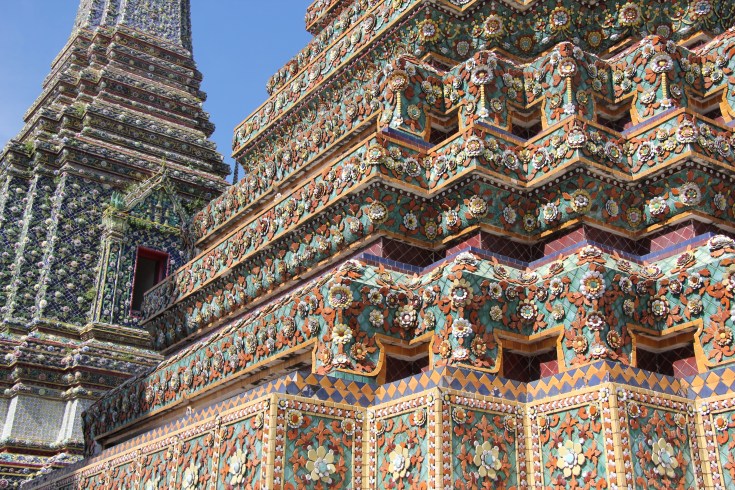 Outre le Bouddha géant, le Wat Pho est magnifique à visiter, les détails et les couleurs des mosaïques sont incroyables. Le temple est aussi connu pour avoir la plus grande collection de statues de Bouddha de Thaïlande.