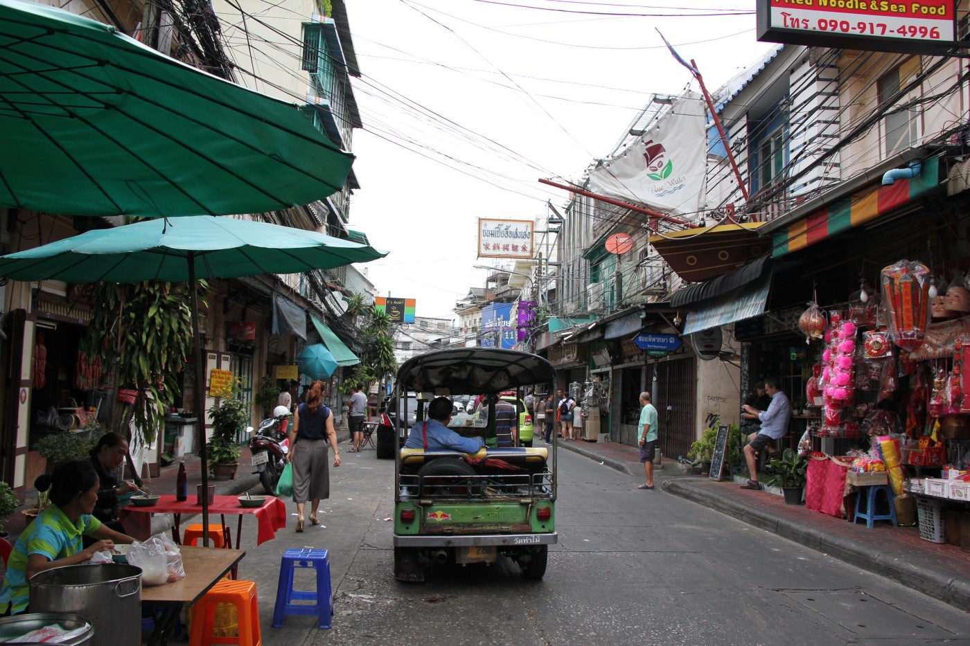 Les chinois sont implantés en Thaïlande depuis bien longtemps, puisqu’on avait fait appel à eux pour la fondation de Bangkok, ils s’étaient donc installés à Yaowarat, l’actuel quartier chinois, dès le XVIIIe siècle. Cela se remarque d’ailleurs car l’ambiance y est très dépaysante, il y a de nombreux bâtiments de style architectural chinois, des temples et de la street food chinoise excellente. On y trouve en grande concentration de vendeurs d’or, mais on peut aussi y acheter du thé.