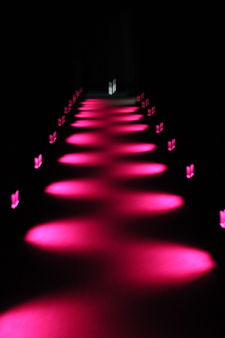 Celui-ci se construit autour d’un parcours, autrement dit, on suit des flèches qui nous indiquent le chemin à prendre pour aller de salles en salles. C’est bon à savoir car cela signifie que l’on ne peut pas revenir dans les salles, mais on peut tout de même y rester autant de temps que l’on veut. Mais dans le même temps, on va de découverte en découverte, suivant un chemin réfléchi par les créateurs et qui fait sens. On se laisse porter, dans le noir et c’est ce qui rend l’expérience encore plus agréable et excitante.